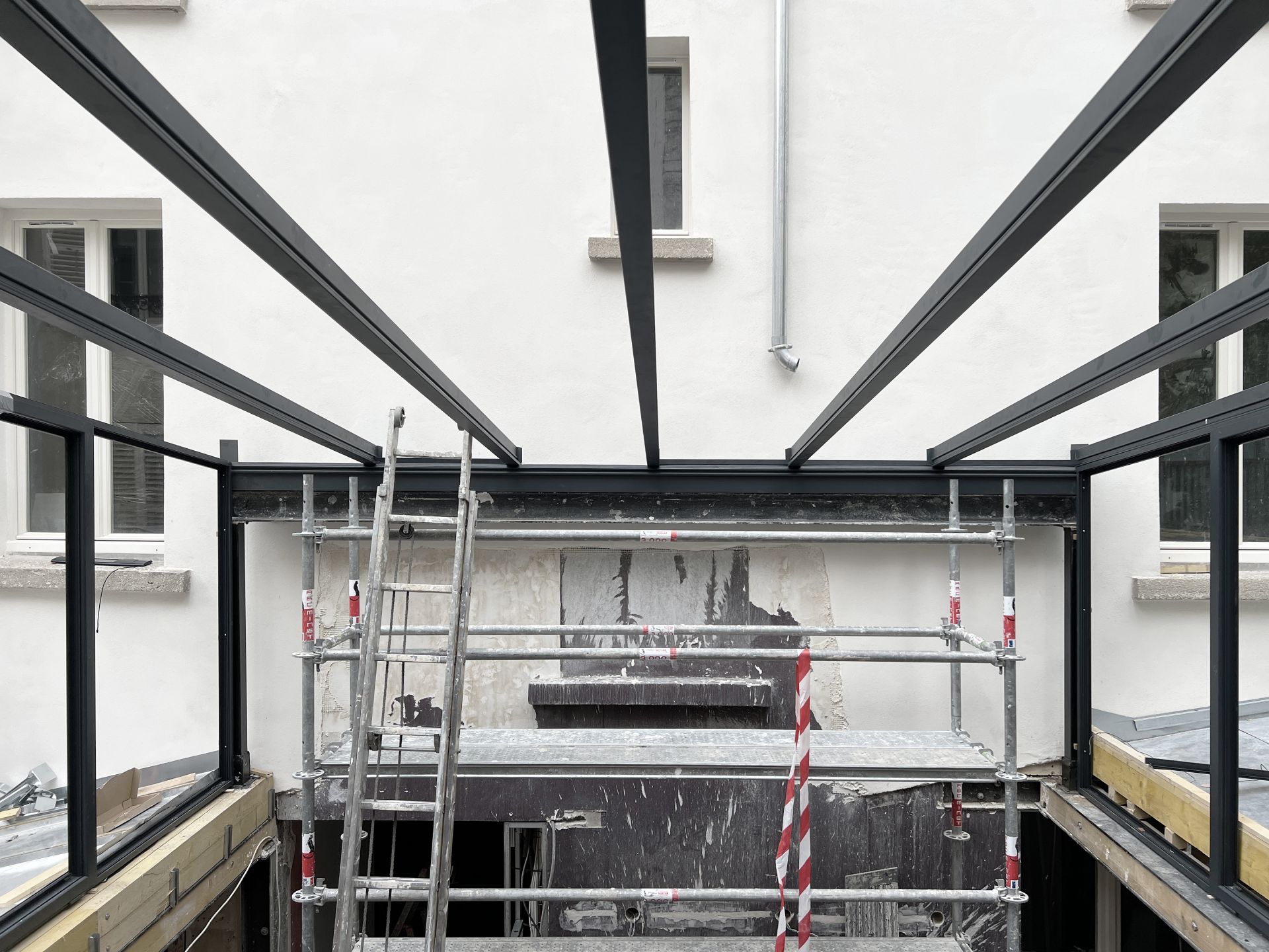 Le projet a permis la création d’un espace couvert sur cour, permettant de profiter de l’espace précédemment inexploité ainsi que la création d’un espace bien-être au sous-sol nécessitant le décaissement partiel de l’espace déjà exploité.
